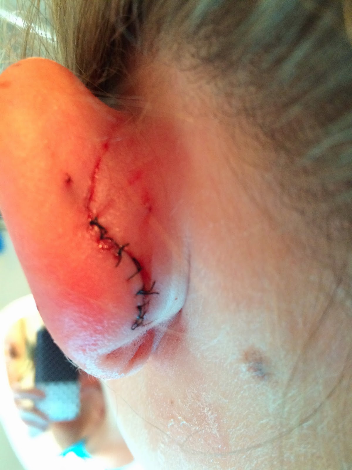 Paige had a little run in with the high jump equipment during track practice. Thank goodness her Dad is really good at stitches (she got 8).